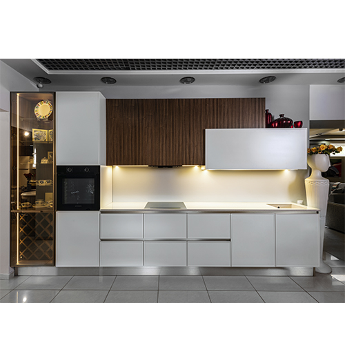 Кухня GRANDE не только красива, но и функциональна благодаря использованию профиля GOLA, который позволяет отказаться от установки традиционных ручек. Это не только добавляет эстетическую привлекательность, но и делает использование кухни более удобным и комфортным.